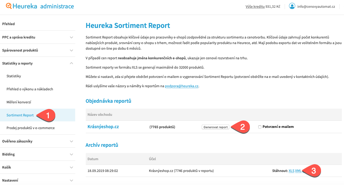 Detailní návod, jak získat Sortiment report z Heureka administrace vašeho e-shopu.